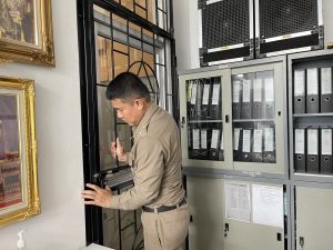 ได้ทำการตรวจสอบคลังเก็บทรัพย์สินของหลวงของทางราชการ ตรวจสอบความแน่นหนาของประตูเหล็ก เพื่อป้องกันการทุจริต